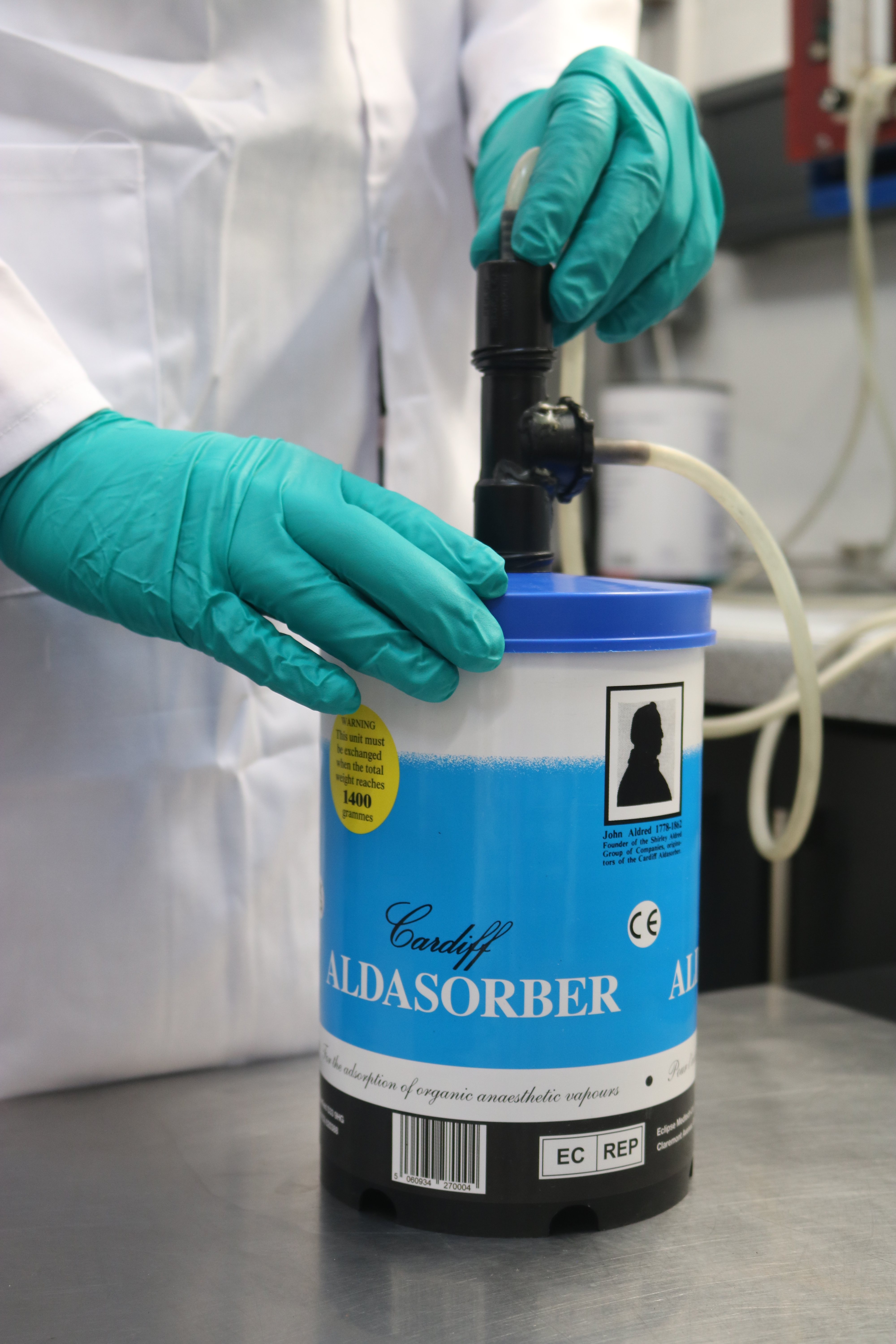 The Cardiff Aldasorber actively scavenges exhaled and waste Halothane gases from the operating theatre environment, thus minimising the effects of long term exposure to Halothane based products. This device plays a critical role in ensuring the safety and well-being of both medical staff and patients during surgeries.
